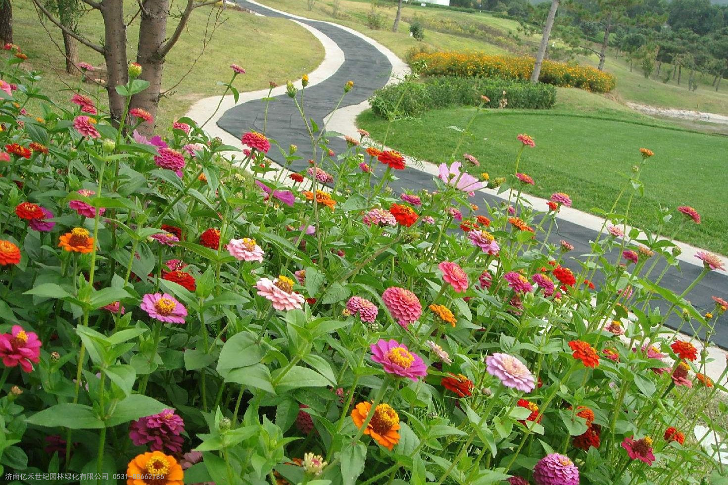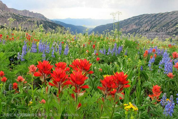(4)水分管理:野花种子和其他花卉种子一样需要充足的水分才能发芽,播种后应在4至6周内保持土壤充分湿润,然后逐渐减少灌溉水量。在没有灌溉条件的地方,应利用雨季适时播种。在极度干旱的情况下,应每周人工补充10毫米左右水分,以保证达到理想的景观效果。