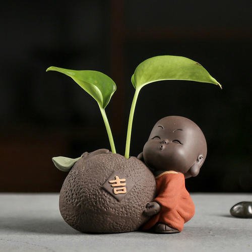 盆的颜色不容忽视,一般盆的色彩以朴素无华、淡雅古朴为宜。用来栽花观果的盆,要与花果色彩协调,忌盆色与花果色相似或反差过大,如红枫配白、乳黄色、浅蓝色盆比紫砂盆更能映衬出红枫的色彩,松柏及皮黑老干者不宜用深色盆。