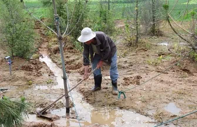 对于较耐寒而采用了根部埋土措施的苗木,可于早春浇冻水时将士挖开;