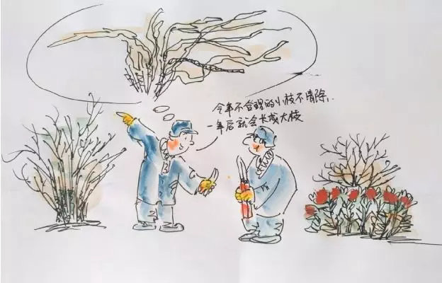注意:月季、紫薇等夏秋季节开花的花灌木,应根据树形树势对所留枝条进行重度短截修剪,一般留至15—20cm(注意剪口芽位臵及方向),以利于抽生长势中庸的枝条,增加开花数量,优化花朵质量。