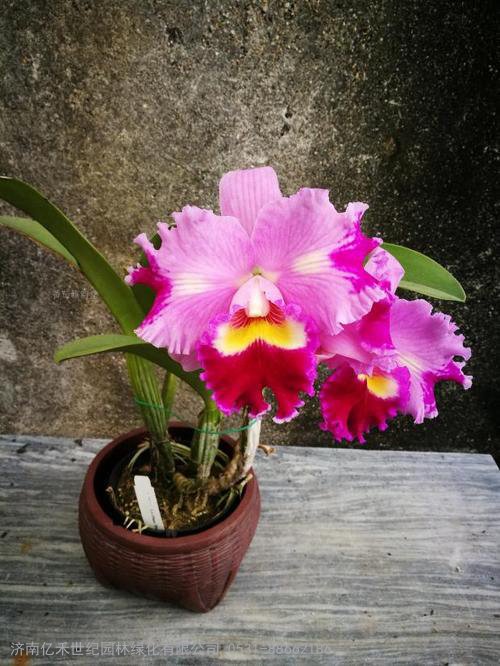 养护提示:卡特兰适合生长的温度全年在20~32℃,冬季不能低于这个温度。卡特兰比较耐旱,浇水的时候就本着“不干不浇,浇就浇透”的原则。卡特兰需要较多的光照,除了正午,可让阳光直接照在植株上。在开花之前施入适当稀释的液肥,花后将无花的花梗剪除。移到半荫处继续管理,定期喷水施肥,给予充足的过滤光线。