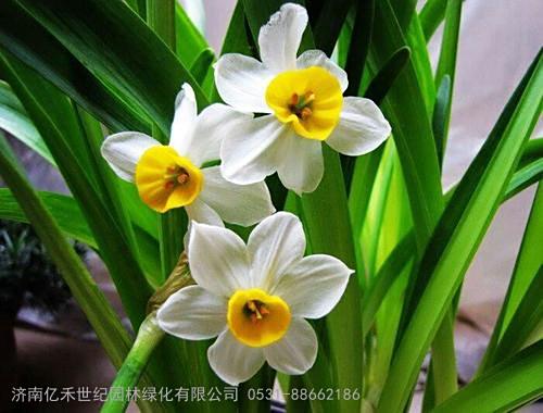 养护提示:室内保持10~15℃,生长良好。水养时,水仙球的下部1/3浸在水中,刚上盆时,水仙可每日换一次水,以后每2~3天换水一次,盆中可用鹅卵石等将鳞茎固定。水仙喜温暖、湿润及阳光充足的地方,否则易徒长,形成盲花。