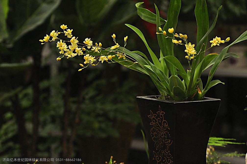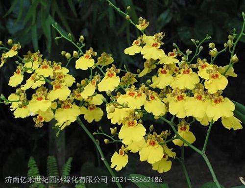 文心兰 又称舞女兰,花茎轻盈下垂,花虽小但是花量很大,外形奇特似跳舞的女郎,也是十分流行的年宵花。