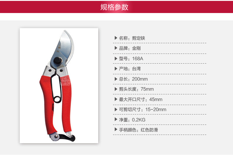 修枝剪是专门针对修剪花枝,树枝而设计的,低矮果树摘果也同 样适用 , 修枝剪根据特殊作用,它的种类有高枝剪 , 粗枝剪 , 整篱剪。