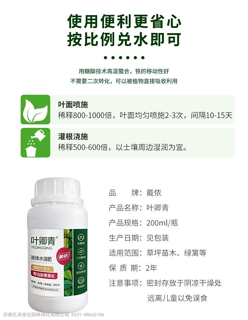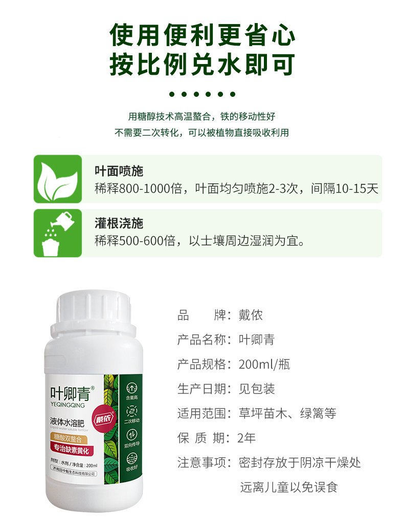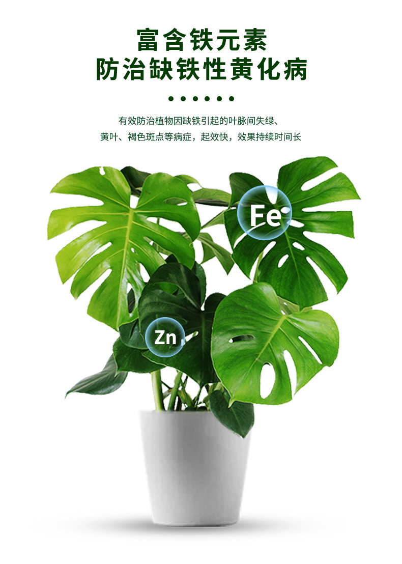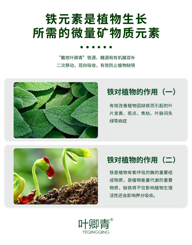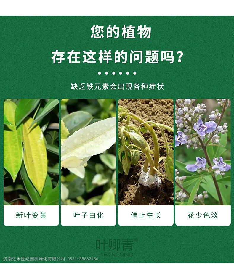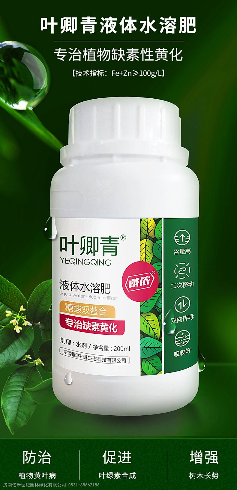 叶卿青螯合铁锌同补液体水溶肥叶面肥一喷绿预防绿植黄化黄叶病